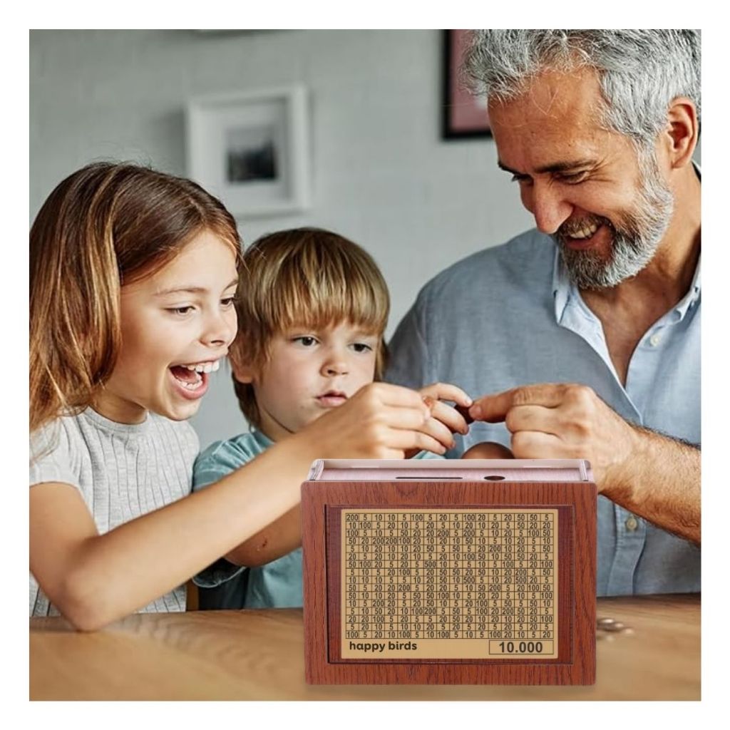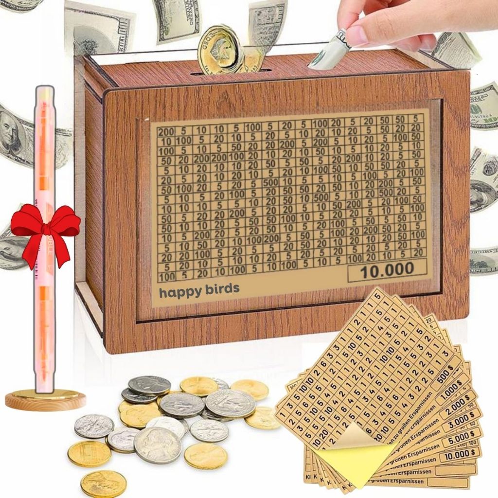- Hộp đựng ti.ề.n tiết kiệm bằng gỗ hỗ trợ lên kế hoạch tiết kiệm thông minh, quản lý tài chính hiệu quả thông qua bảng mục tiêu và kế hoạch rõ ràng